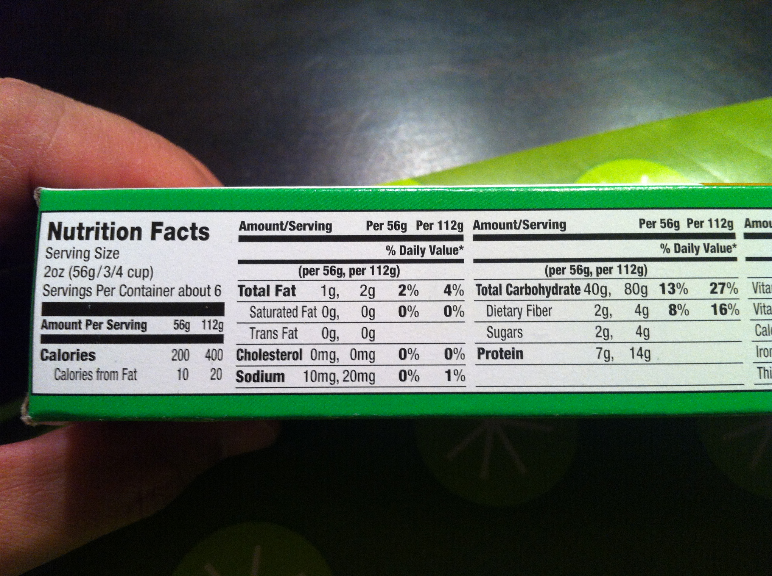 Once I added some soy sauce to the mix, the pasta looked like whole wheat pasta. But the key to me was the taste. Not bad! Not obvious that it has other stuff inside it. Prepare these suckers in some tomato sauce it would be a slam dunk for sure. The only thing that weirded me out with this box of Ronzoni Garden Delight is the Nutrition Facts list 6 servings on the box but the cooking directions list 3 servings as a full box.