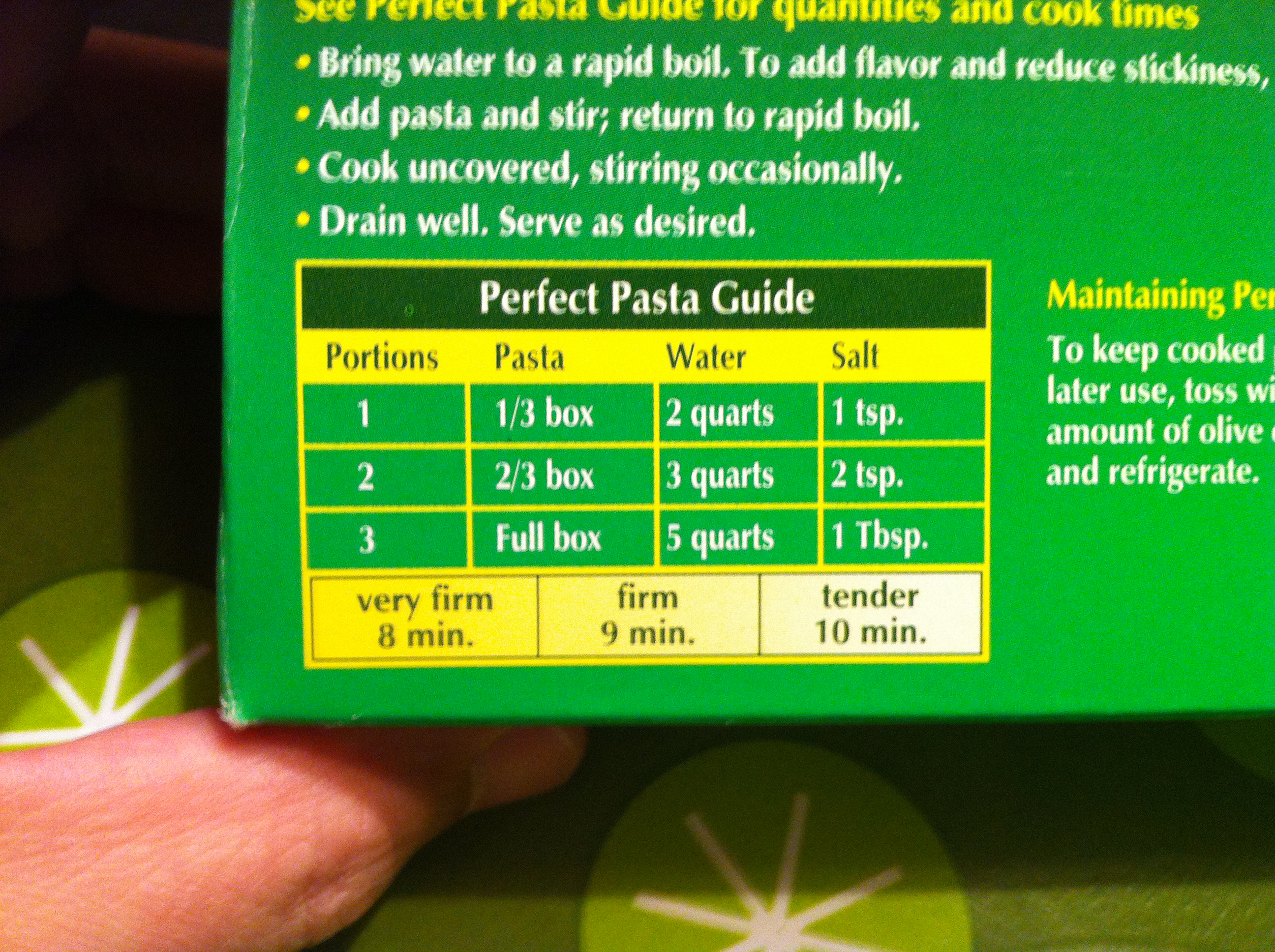 Which brings me to this Ronzoni Garden Delight pasta. Slightly more expensive than other boxes of pasta (maybe $0.20 more), this pasta has “Enriched carrot, tomato & spinach blend” and a “full serving of vegetables per 4 oz. portion”. A perfect way to hide some extra veggies in their food. I saw them at the store and said “sure, why not.” I honestly don’t know if there claims are true. Or if they are true but it doesn’t have the same benefits you think it would.